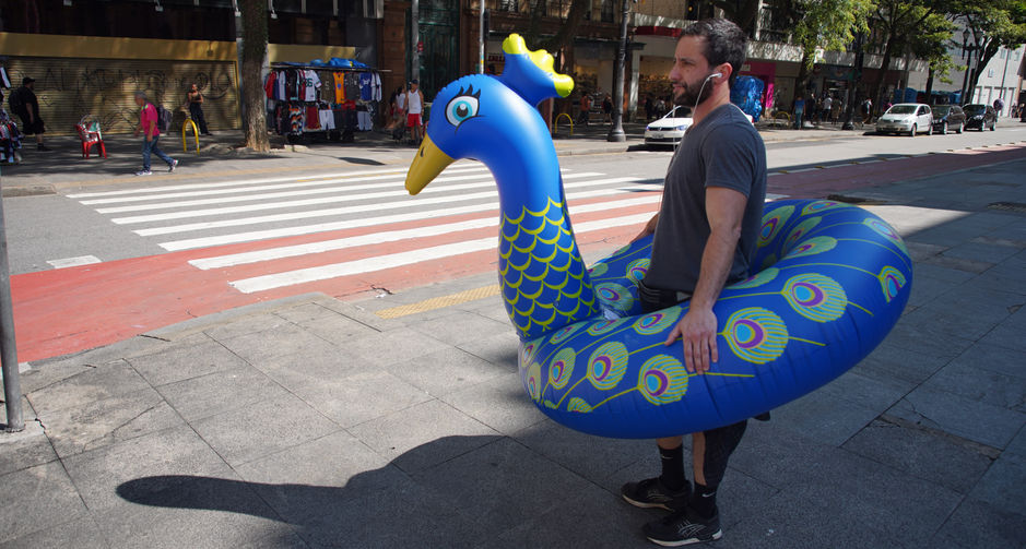 En la fase final de la residência, invitamos a varias personas a caminar por los recorridos sugeridos, transportando "sus" objetos inútiles a la escucha de los audios producidos por los 8 artistas residentes (disponibles abajo para descarga), e invitamos al fotógrafo Pedro Bayeux a registrar la acción.